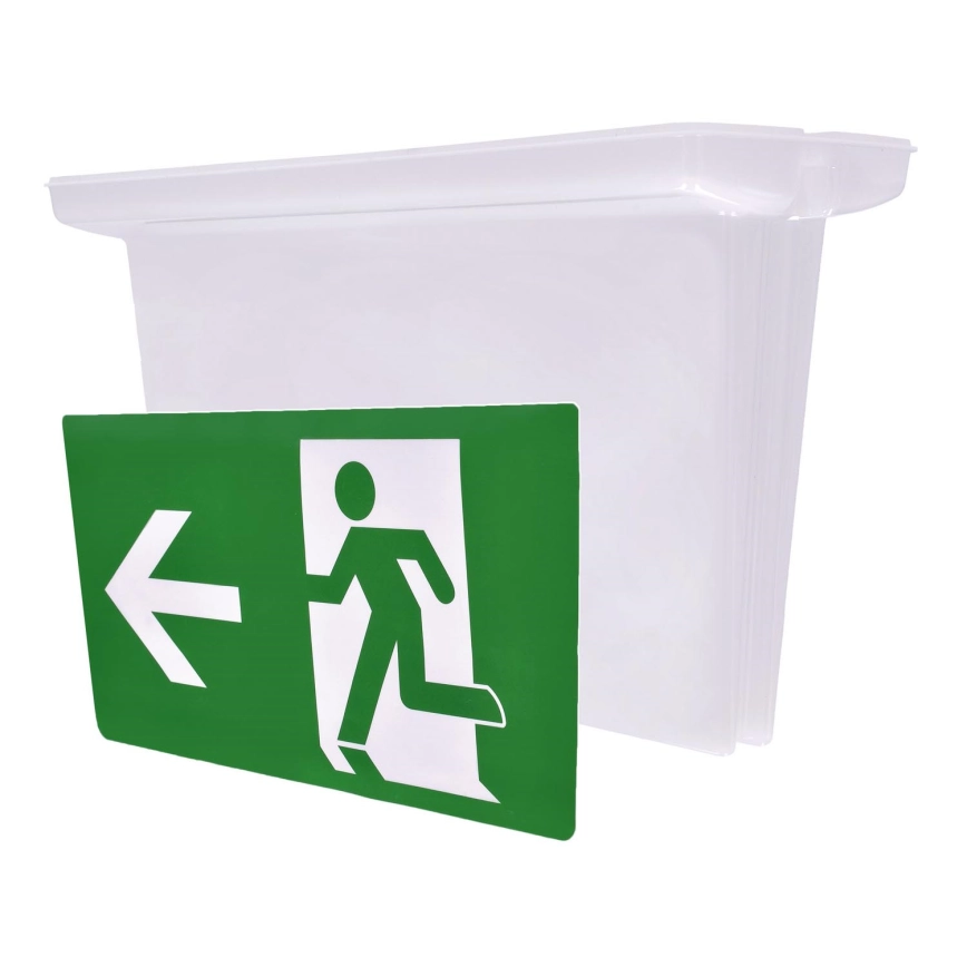 • Таванна табела за аварийно осветление, предназначена за обозначаване на евакуационни пътища в обществени или търговски помещения.