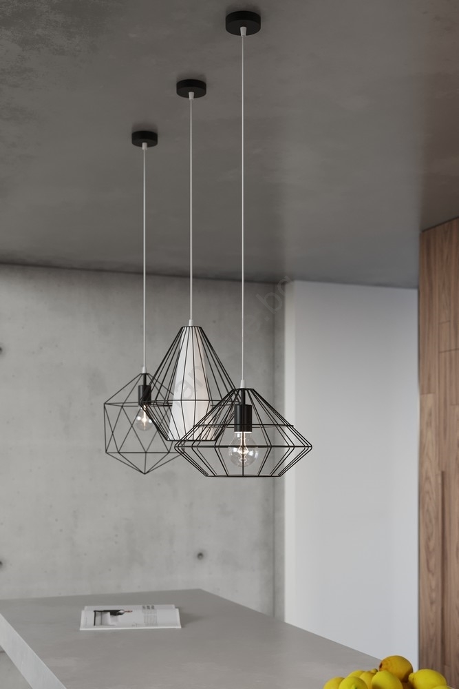 • Полилей на въже DEMI 1xE27/60W/230V черна/бяла