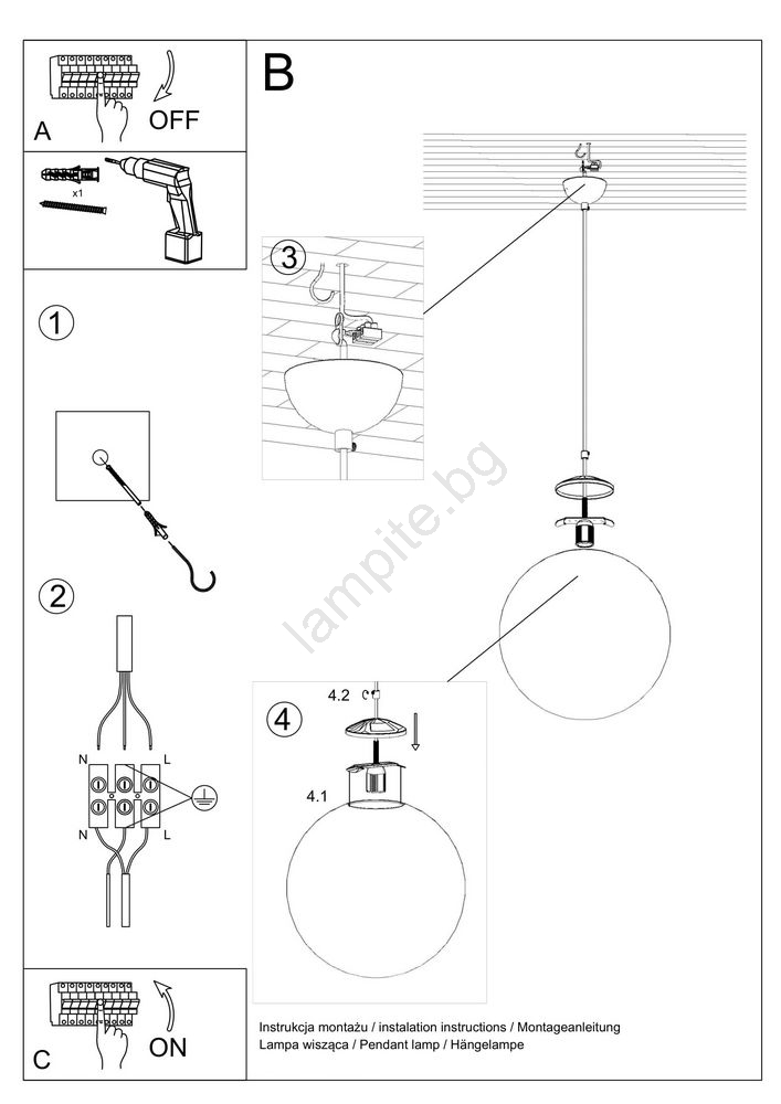 Полилей на кабел TOYA 1xE27/60W/230V Ø 30 см бял/златист се отличава с приятен и функционален дизайн.  Подходяща е крушка с цокъл E27. Тук можете да закупите и други крушки на изгодни цени. Ще имате интересно допълнение към дома си.