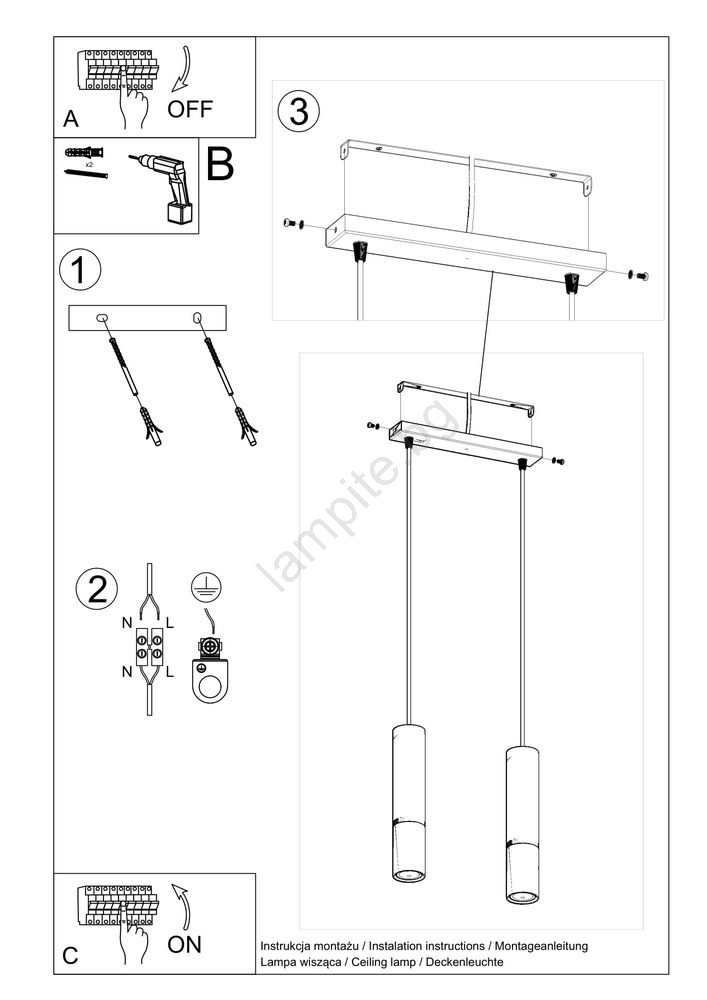 • Полилей на верижка LAGOS 2 2xGU10/40W/230V бяла