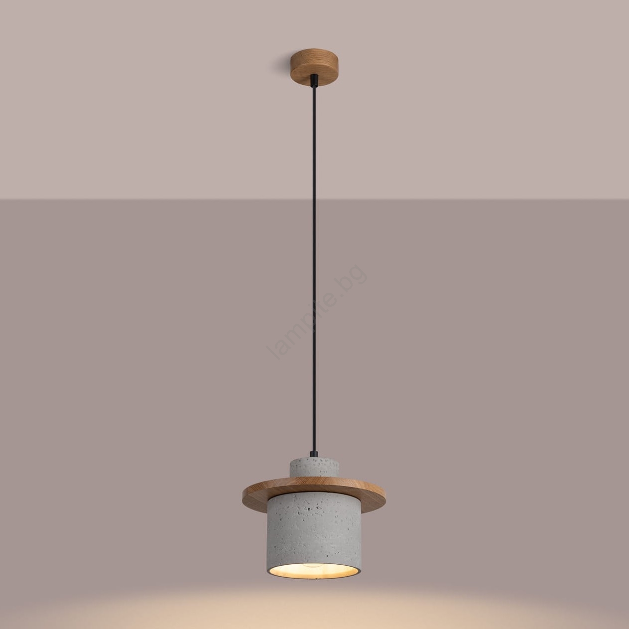Висяща лампа на кабел MAB 1xE27/15W/230V Ø 22 см, бетон/сив