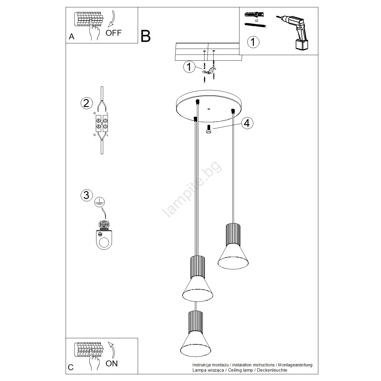 Полилей на кабел ESTRIA, 3xE14/10W/230V, Ø 30 cm, син