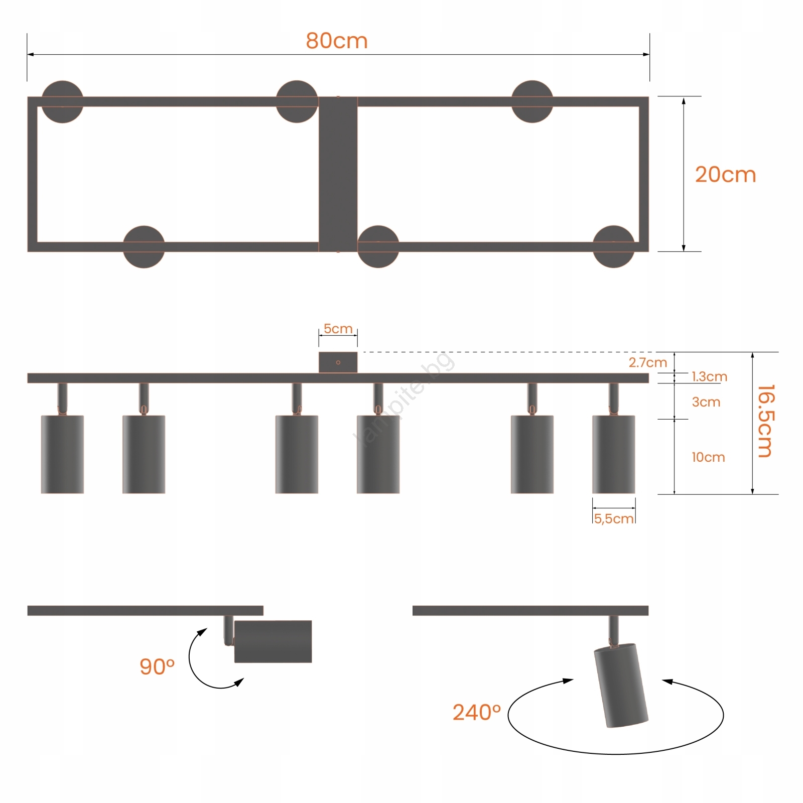 • Точково осветително тяло 6xGU10/30W/230V черно