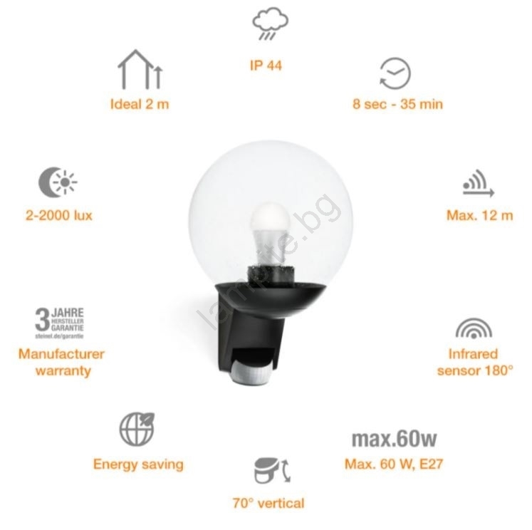 • Стенна лампа със сензор и прост класически дизайн за дома и градината.