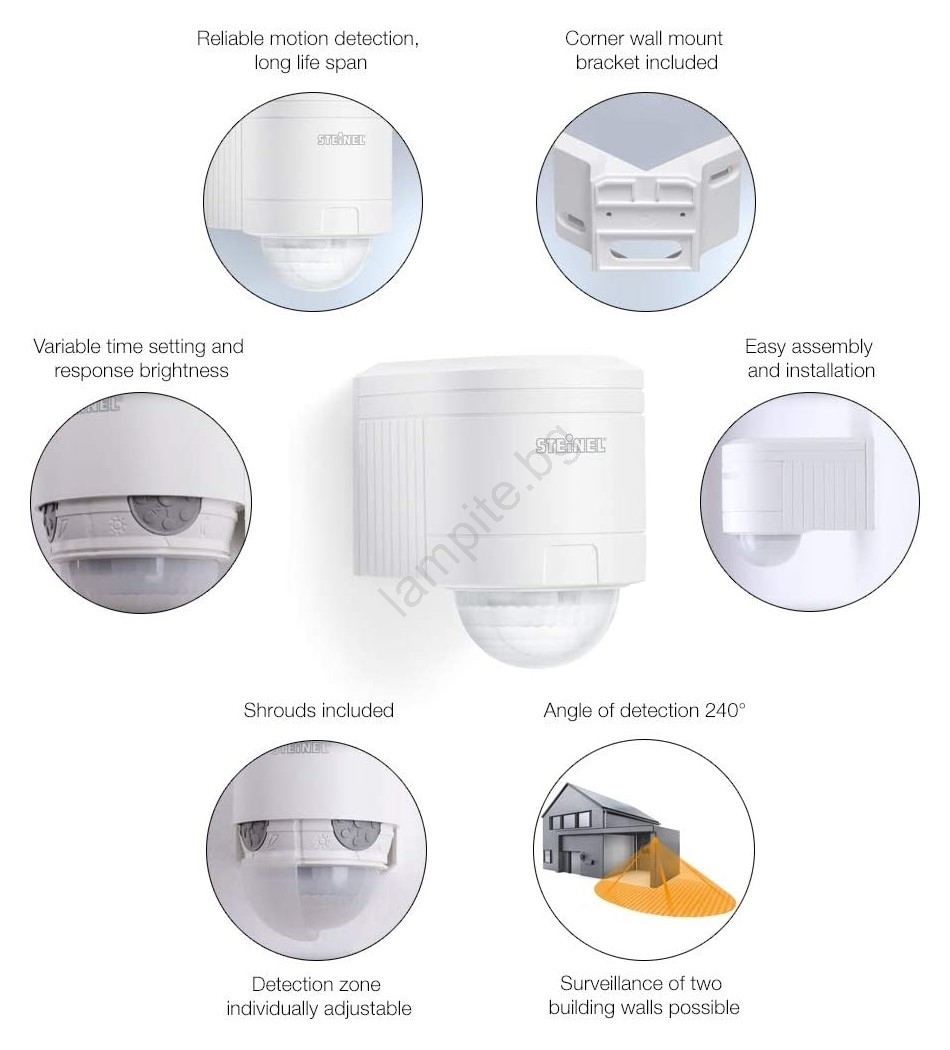 STEINEL 602819 - Екстериорен инфрачервен стенен сензор IS240 бял IP54