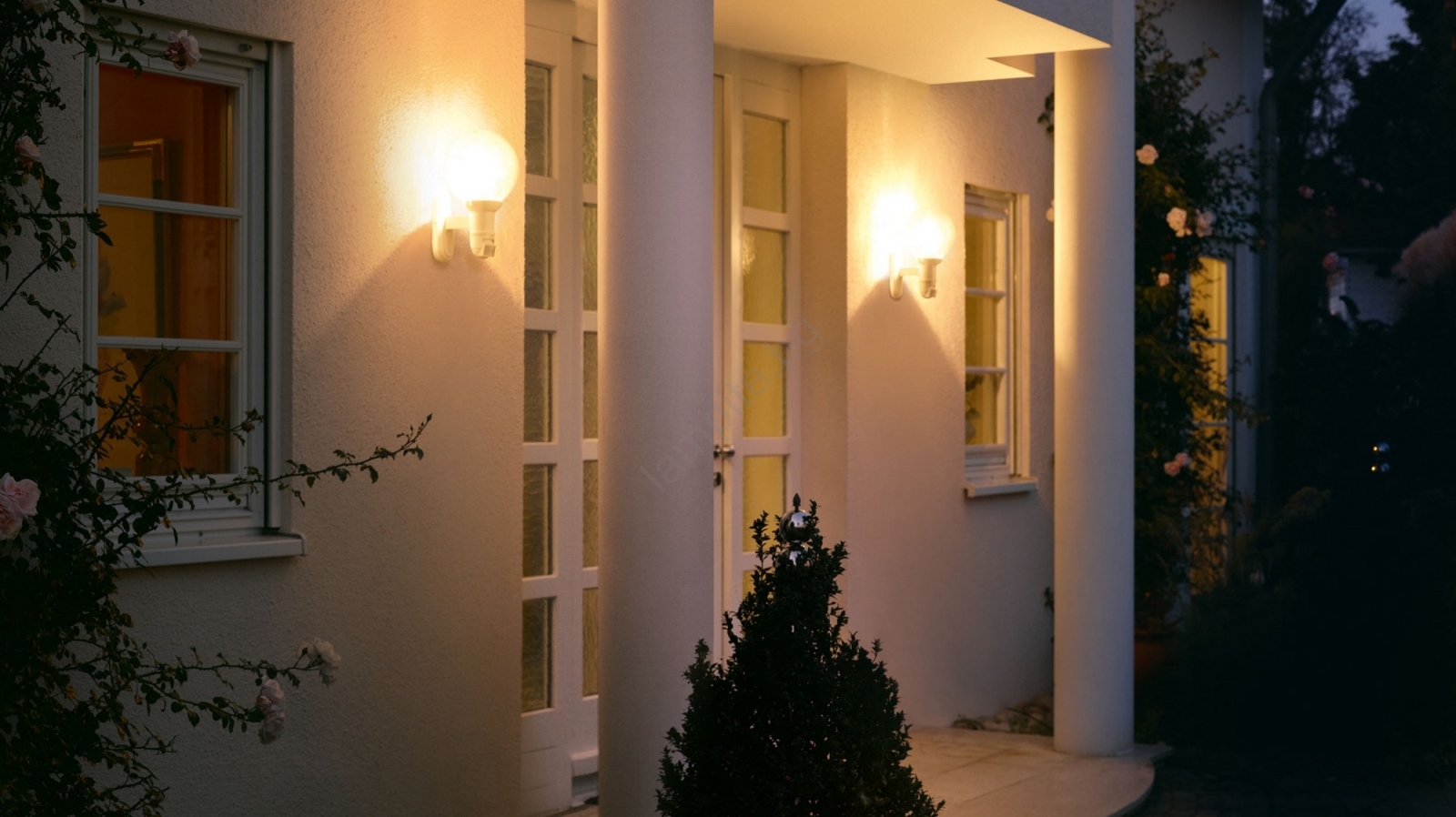 • Външна стенна лампа със сензор, подходяща за фасадата на вашия дом.