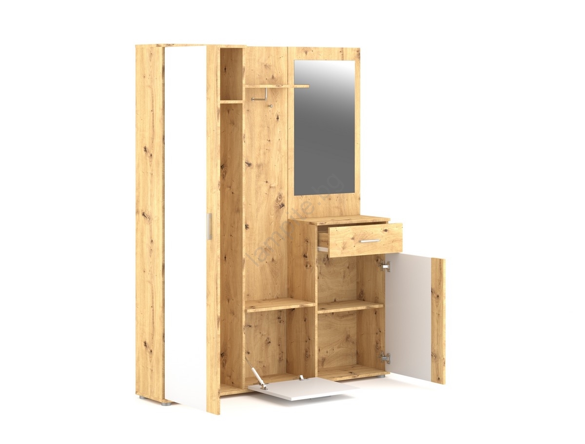 Стенен модул за антре с огледало NOLAN дъб artisan/бяла