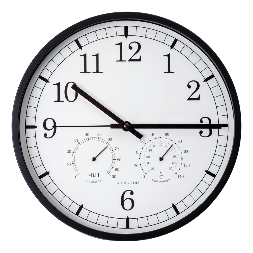 Стенен часовник с термометър и влагомер, Ø 30 см, 1xAA, черно/бяло