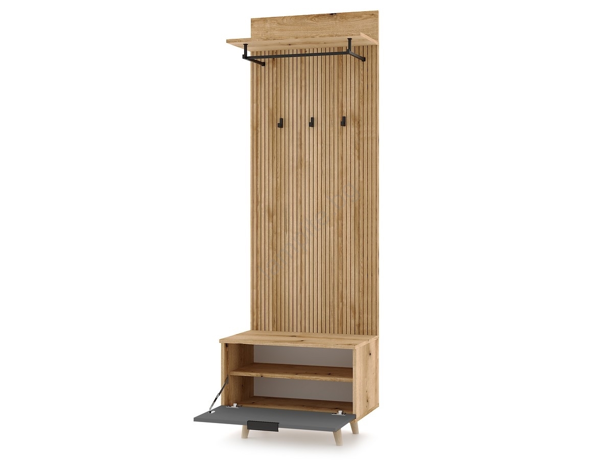 • Под него се намира затворено отделение за обувки, аксесоари или други ежедневни принадлежности.