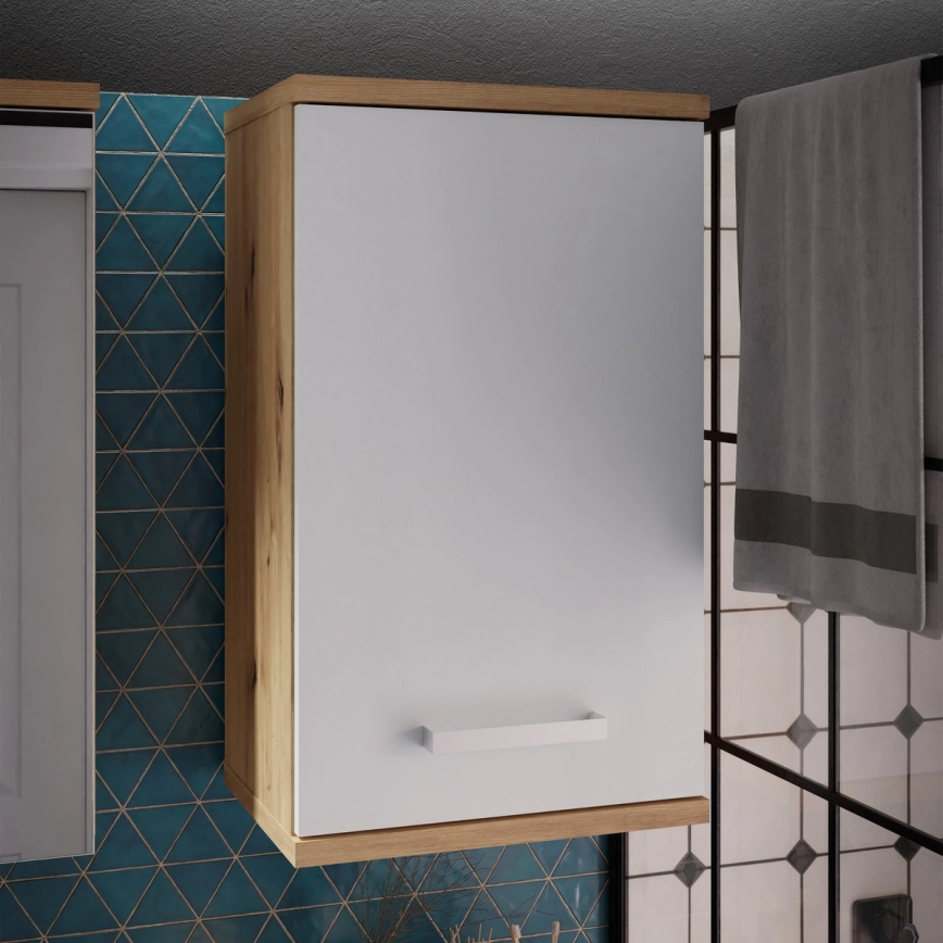 Стенен шкаф за баня VENOM, бял/артизански дъб