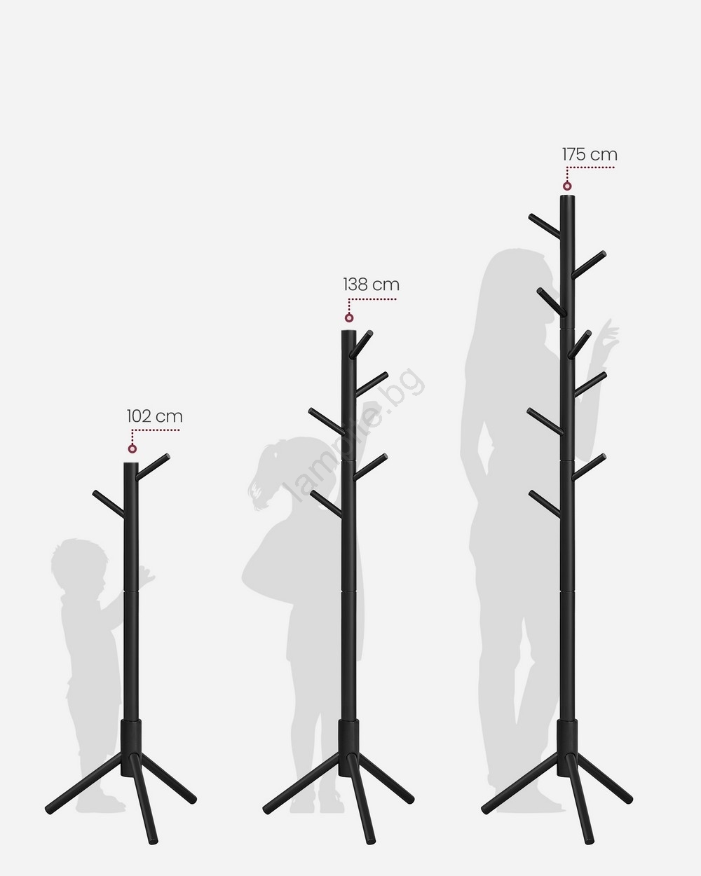 • Трисекционната конструкция ви позволява да изберете височината на закачалката според вашите изисквания - за деца са достатъчни 1–2 секции, за възрастни инсталирайте всичките 3 секции.