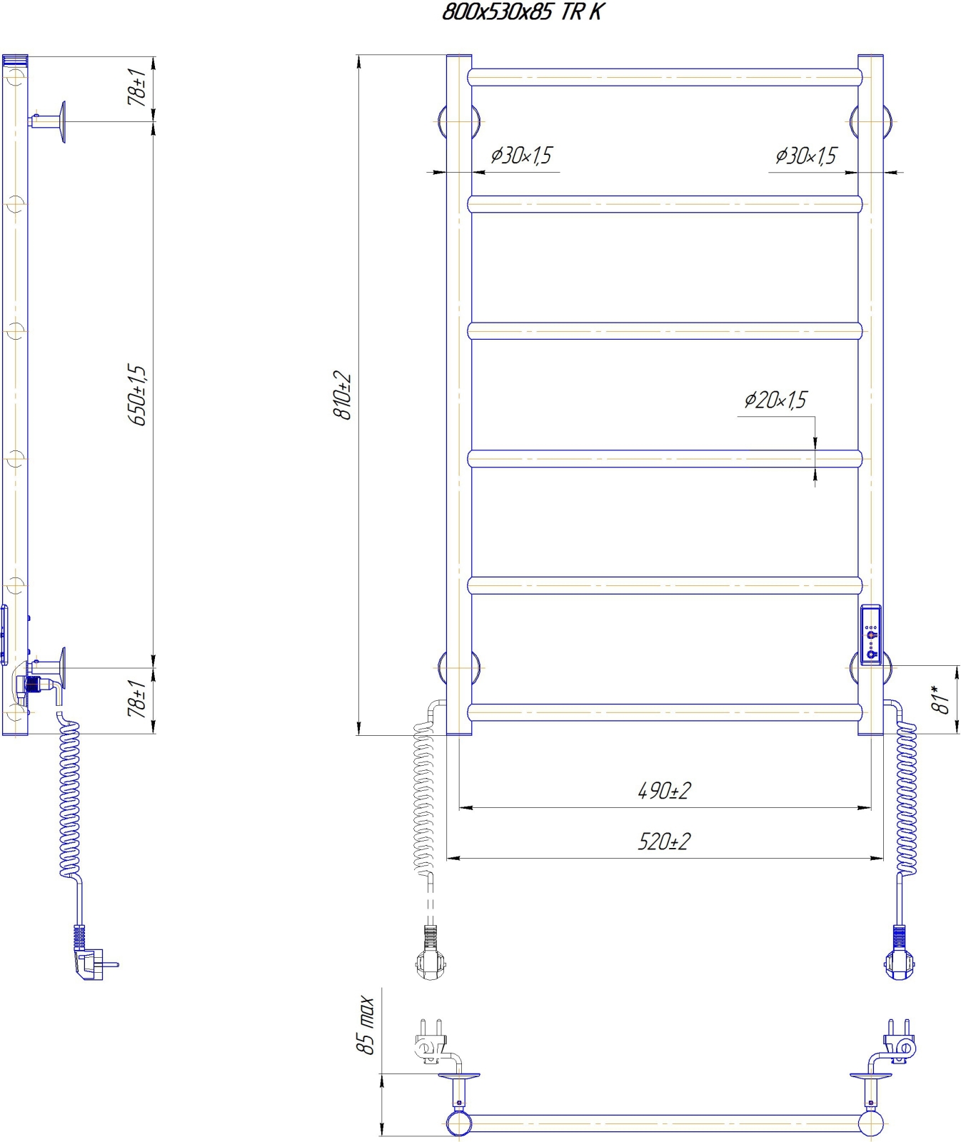 Лестничен радиатор за баня CLASSIC 110W/230V 81x52 cm неръждаема/черна дясна