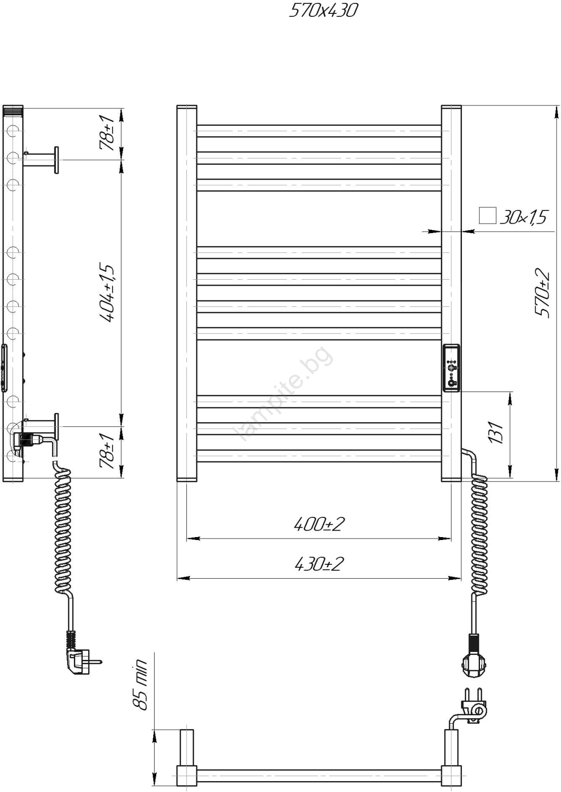 Сушилник за кърпи за баня HF DERBY 100W/230V 57x43 cm бял десен