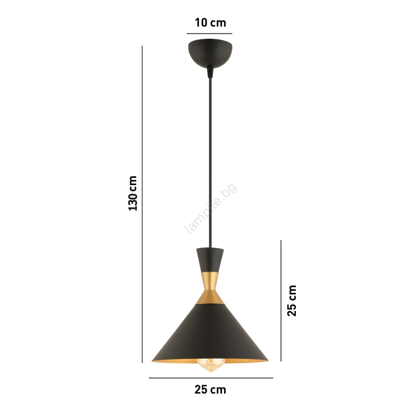 Полилей на кабел MONZA 1xE27/40W/230V Ø 25 см черно/златисто се отличава с приятен и функционален дизайн.  Подходяща е крушка с цокъл E27. Тук можете да закупите и други крушки на изгодни цени. Ще имате интересно допълнение към дома си.