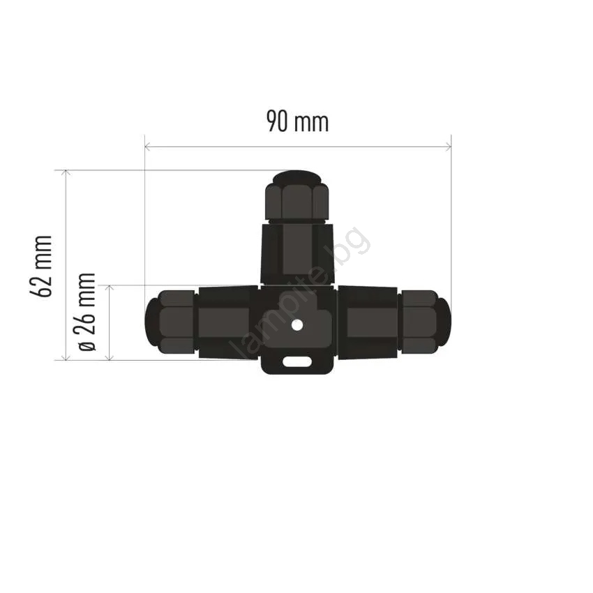 • Водоустойчива кабелна Т-съединител за свързване на проводници.