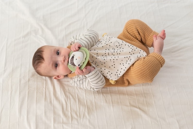 • Към възглавницата може да се прикрепи и дрънкалка с гризалка и шумоляща играчка от плат под формата на симпатично лъвче.