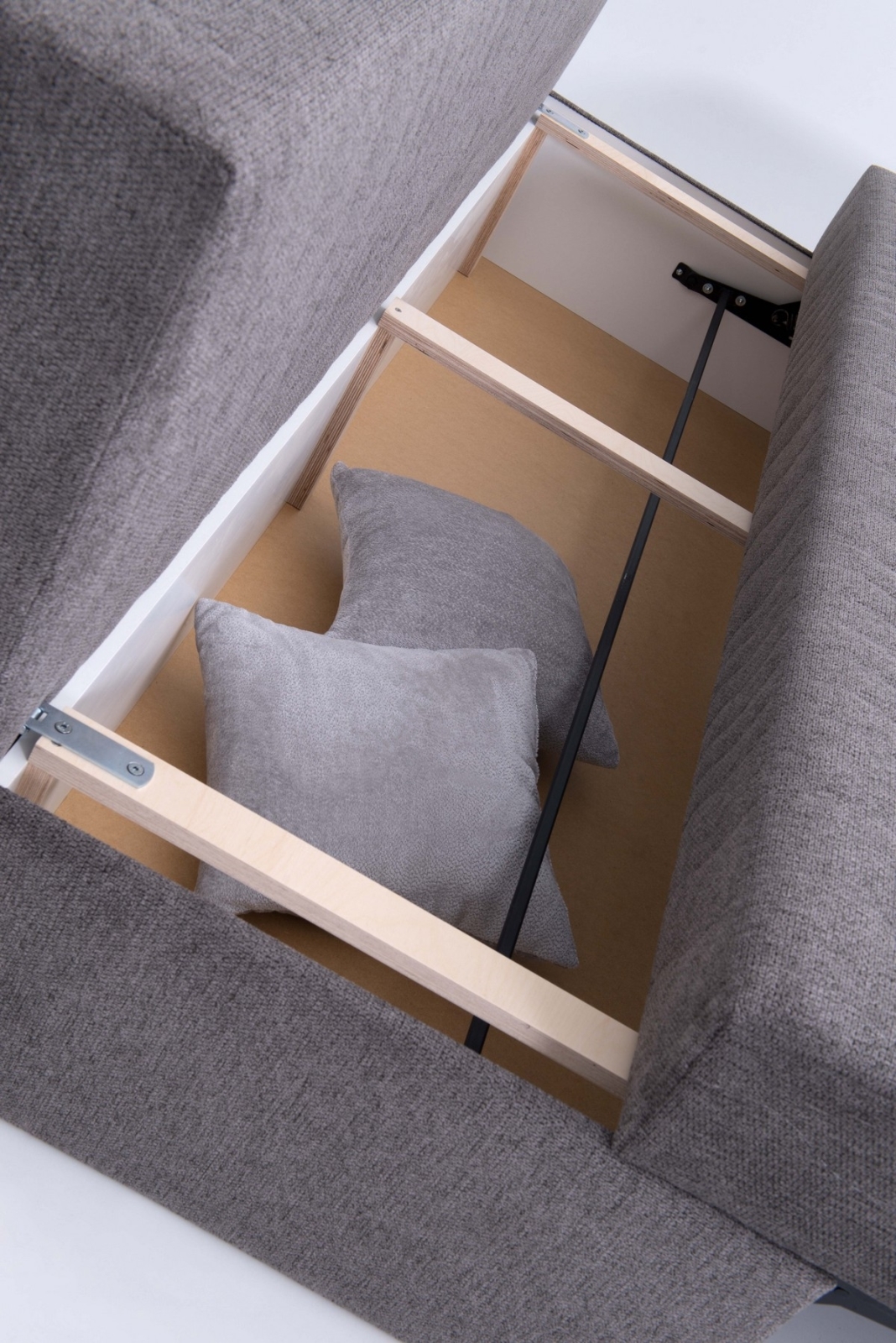• Към дивана има голямо място за съхранение, което е идеално за спално бельо или други вещи.