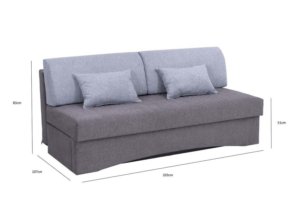 Тапициран разтегателен триместен диван за ежедневно спане без подлакътници PAUL сив