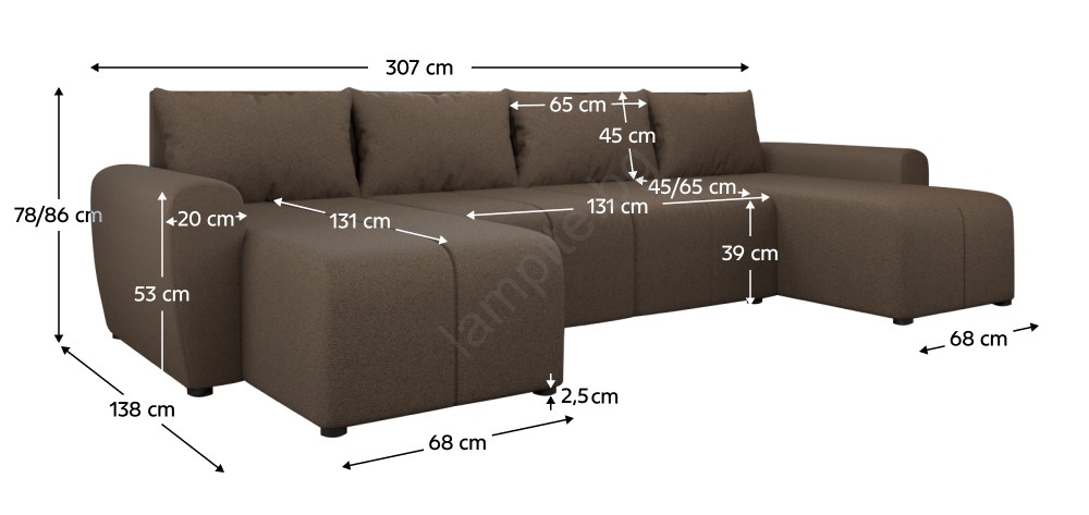 • Стилните черни крачета ненатрапчиво допълват цялостта и придават на ъгловия диван лекота и модерен характер.