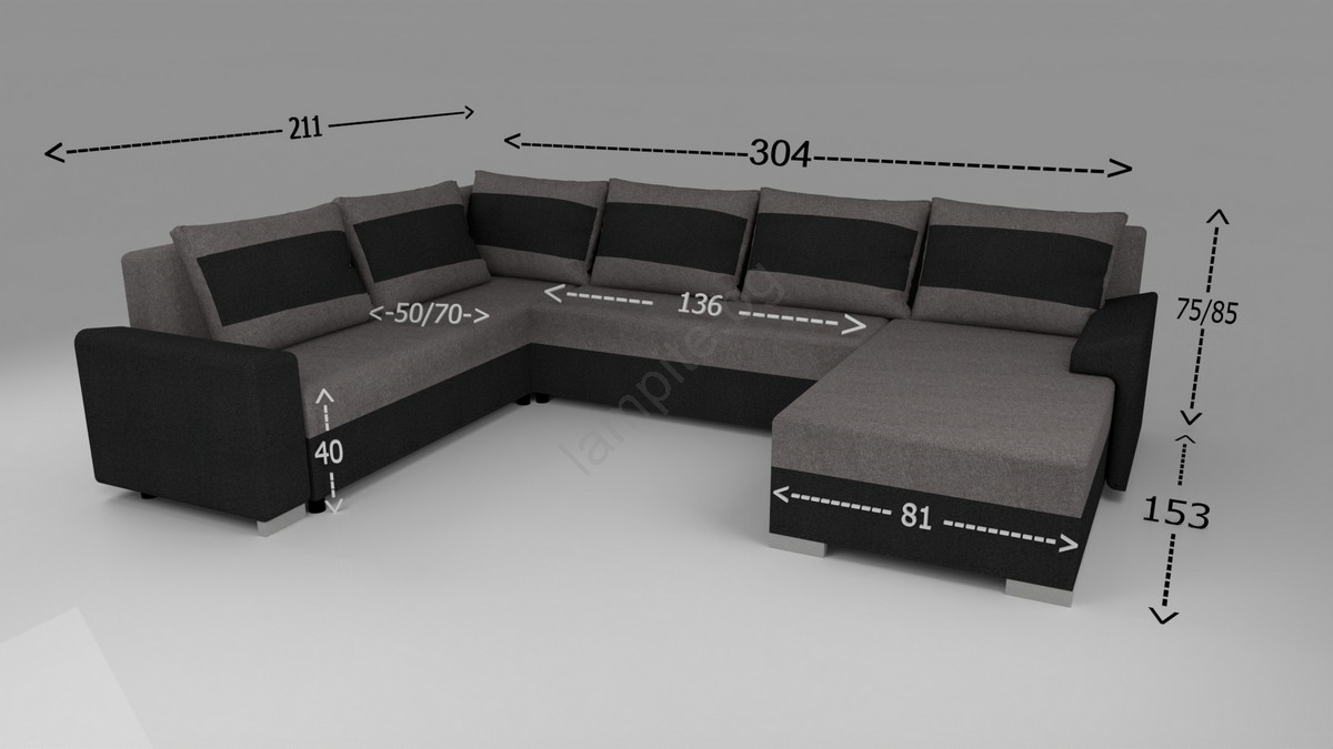 • Тапицирана универсална разтегателна холова гарнитура тип U OXFORD черна/сива
