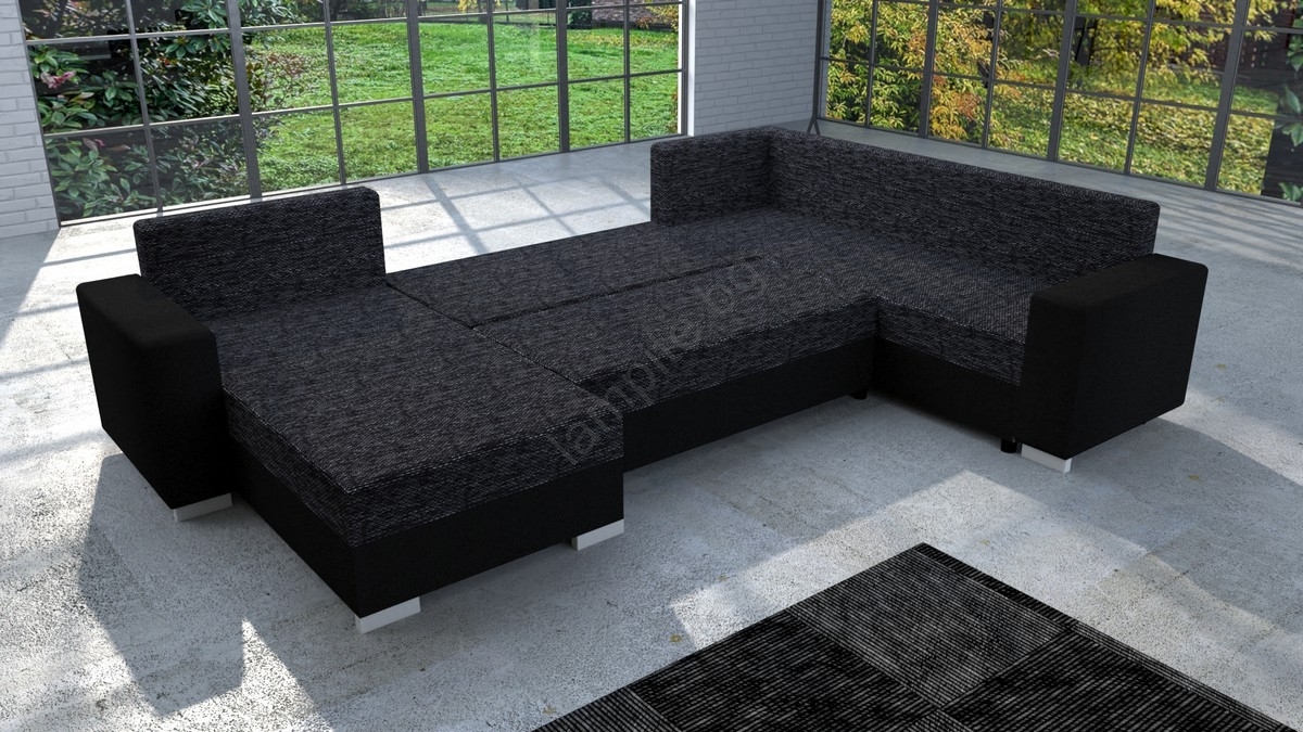 • Тапициран универсален разтегателен U-образен диван YORK, сив/черен