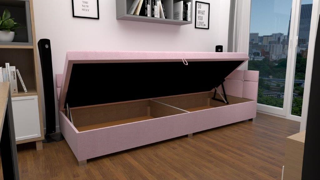 Тапицирана лежанка AMSTERDAM 90x200 см с универсална табла и място за съхранение, розова