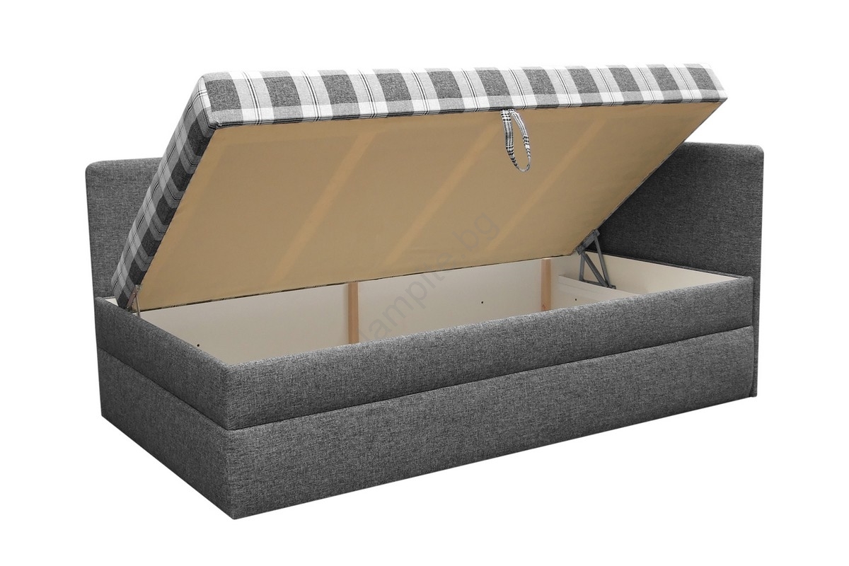 • Леглото е оборудвано с голямо място за съхранение с повдигащ механизъм отстрани за съхраняване на спално бельо и други сезонни вещи.