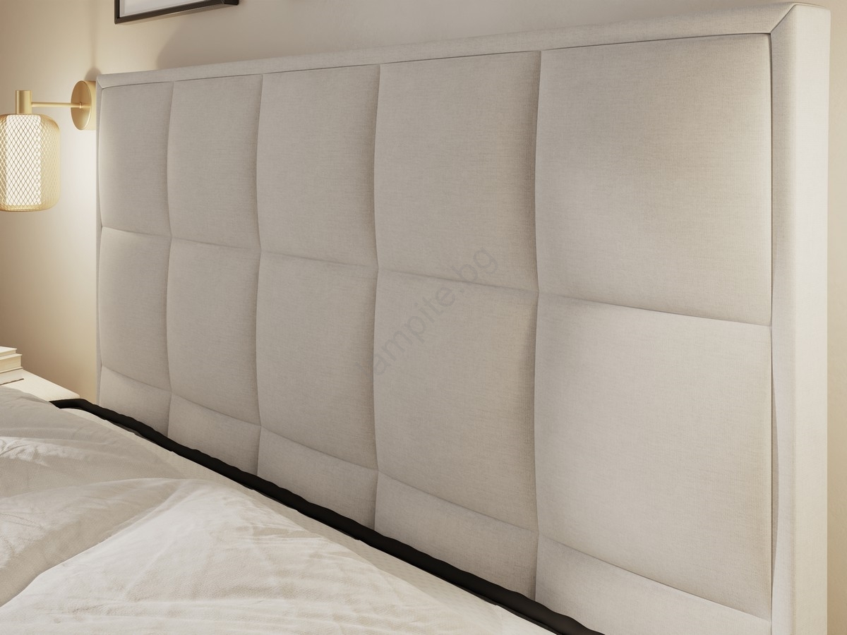 • Високата табла с вертикално капитониране придава на леглото изискан акцент и осигурява дискретна, но удобна опора за гърба.