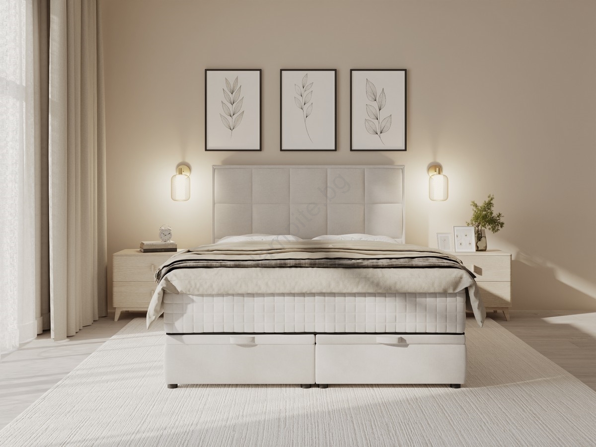 Тапицирано легло GRACE 160x200 см с включени матраци и вградено място за съхранение, бежово