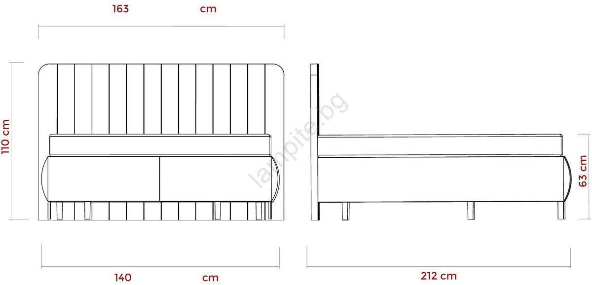 • Леглото разполага с просторно място за съхранение за спално бельо и други вещи.