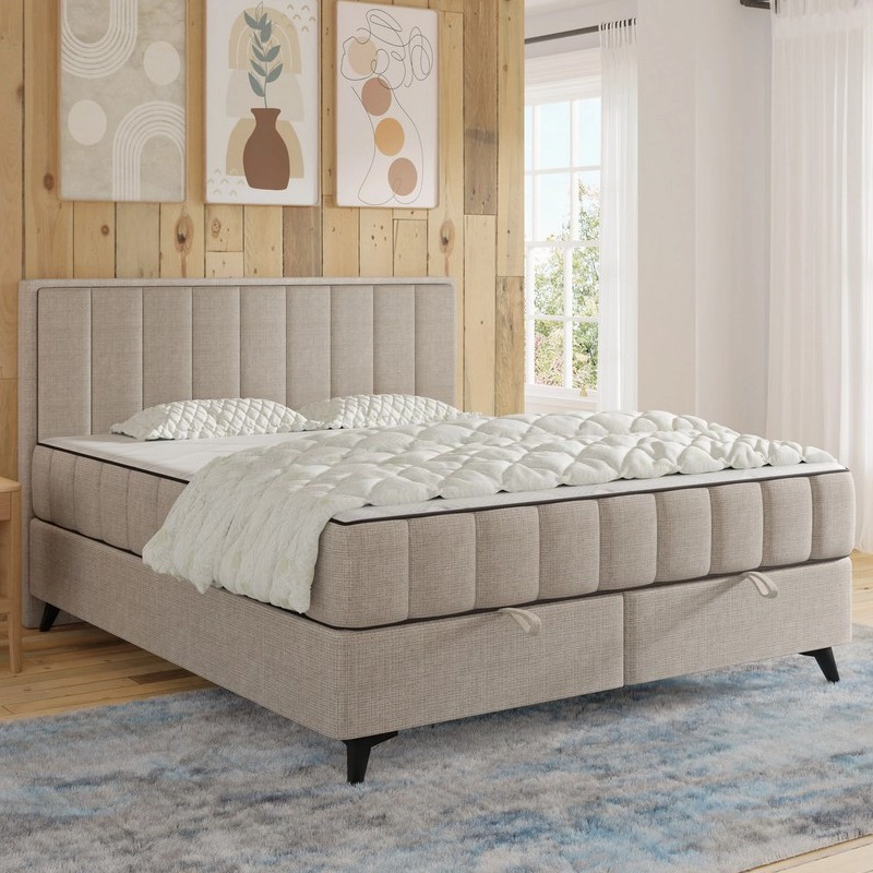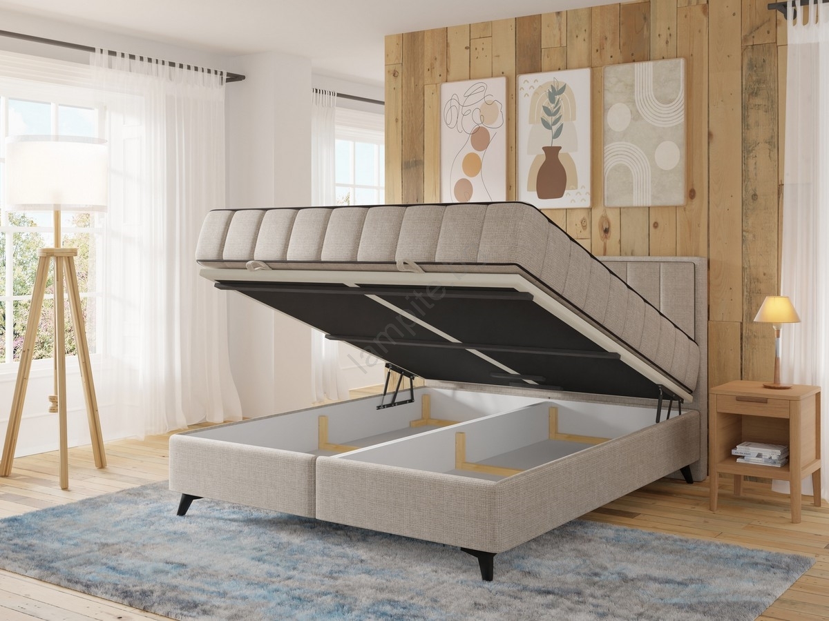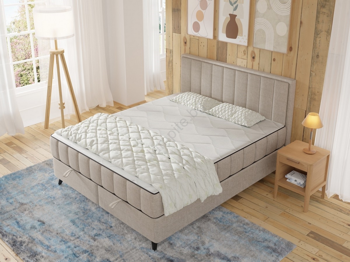 Тапицирано легло ALICIA 140x200 см с матраци, топер и вградено място за съхранение, бежово