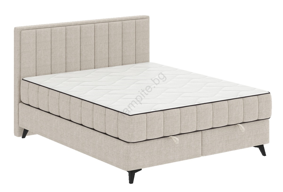 • Тапицирано двуспално легло съчетава модерен стил с практични функции.