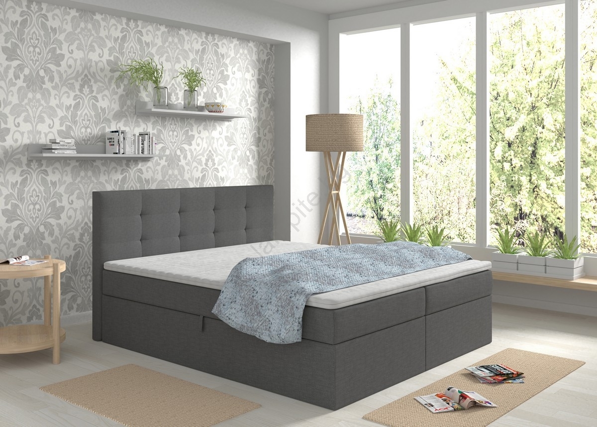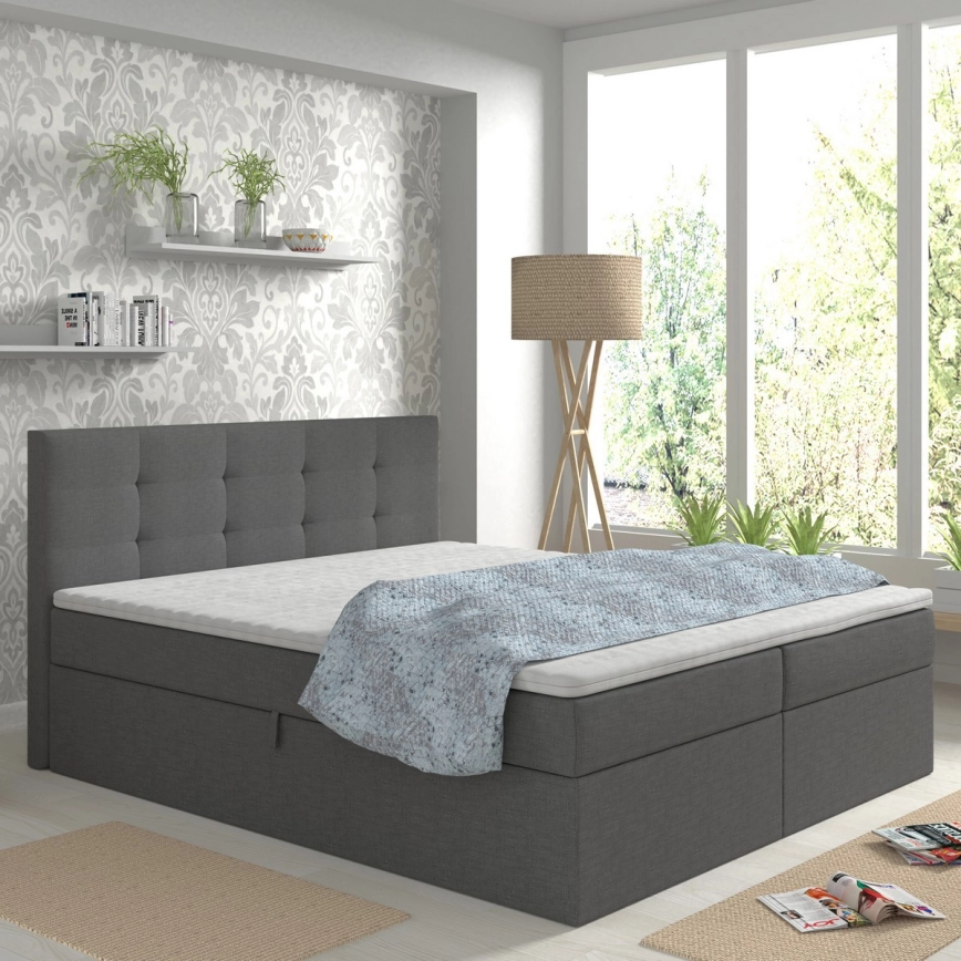 Тапицирано легло EMBER 180x200 см с матраци и топер и вградено място за съхранение, антрацит