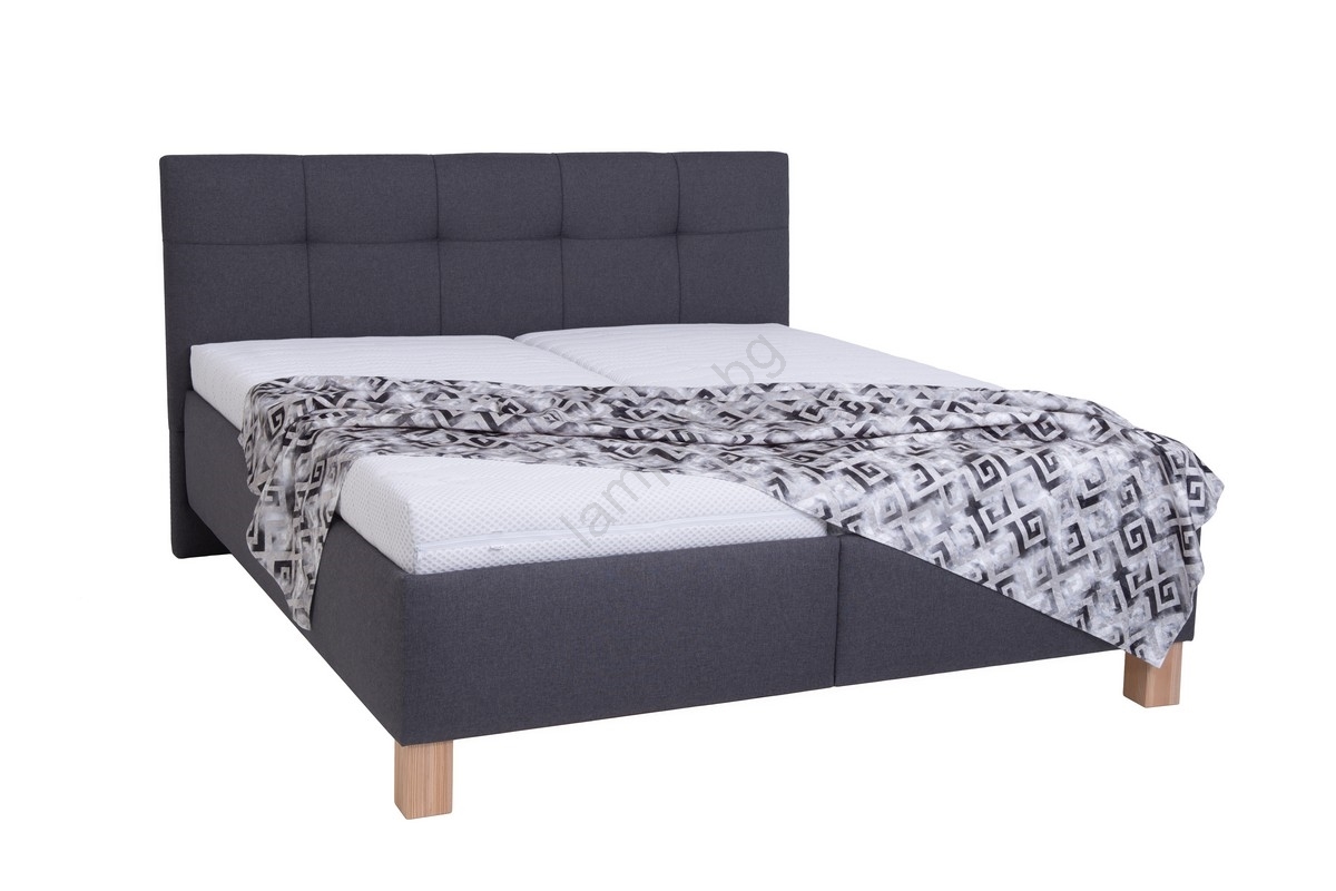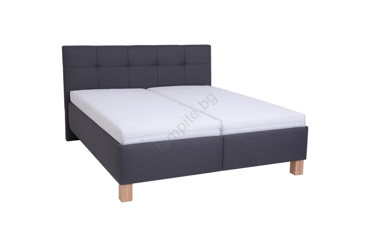• Тапицирано двуспално легло с отделно положени матраци се отличава с детайлно оформена, елегантно прошита табла.
