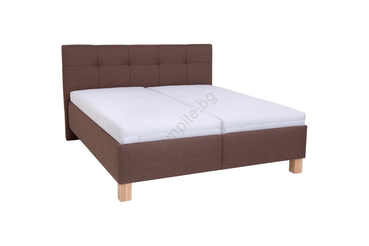 • Тапицирано двуспално легло с отделно поставени матраци се отличава с детайлно изработено, елегантно прошито табло.