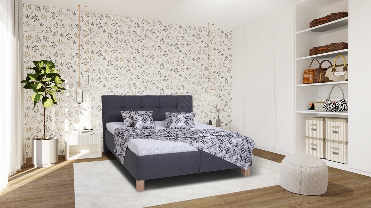 • Тапицирано легло MARIA 180x200 cm с матрак и място за съхранение, антрацит