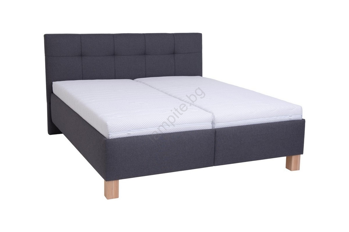 • Тапицирано двуспално легло с отделно положени матраци се отличава с фино изработена, елегантно шита облегалка.