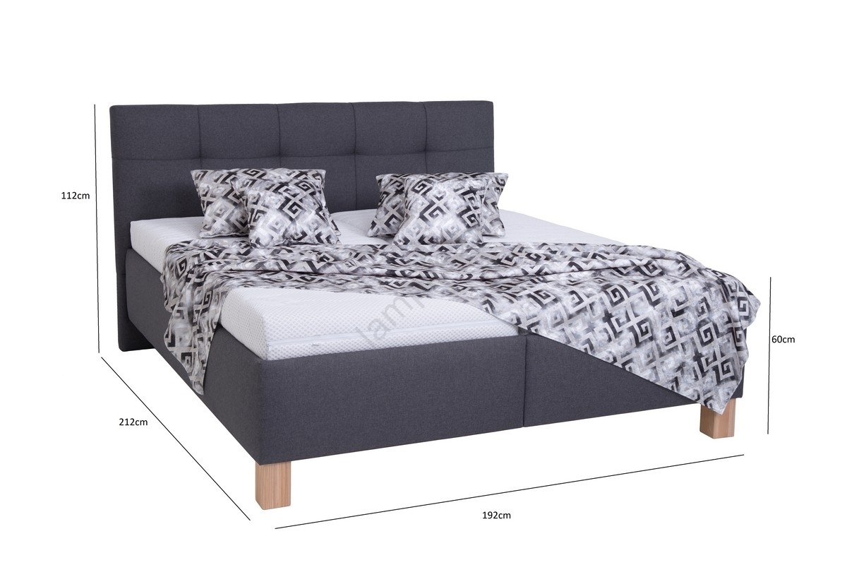 • Тапицирано легло с място за съхранение MARIA 180x200 см, без матрак, сиво