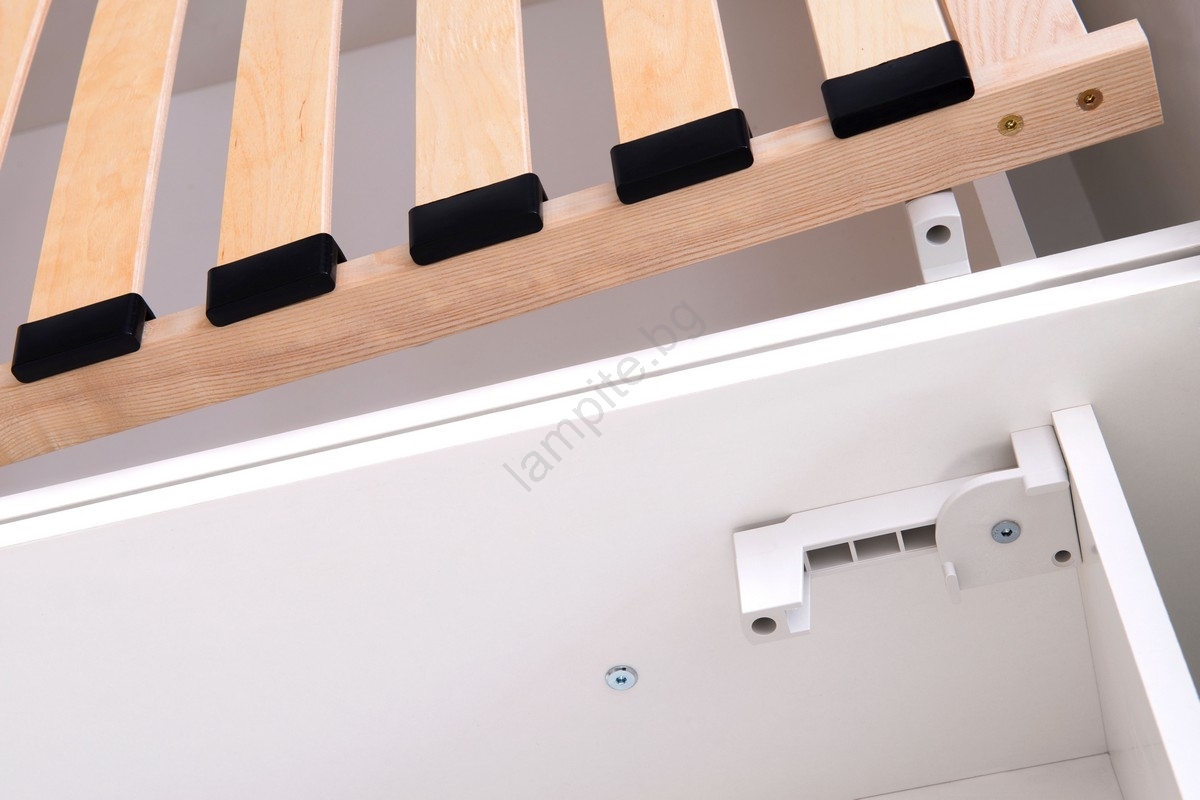 • Леглото е оборудвано с просторно място за съхранение с вентилационни решетки за съхранение на спално бельо или сезонни вещи.