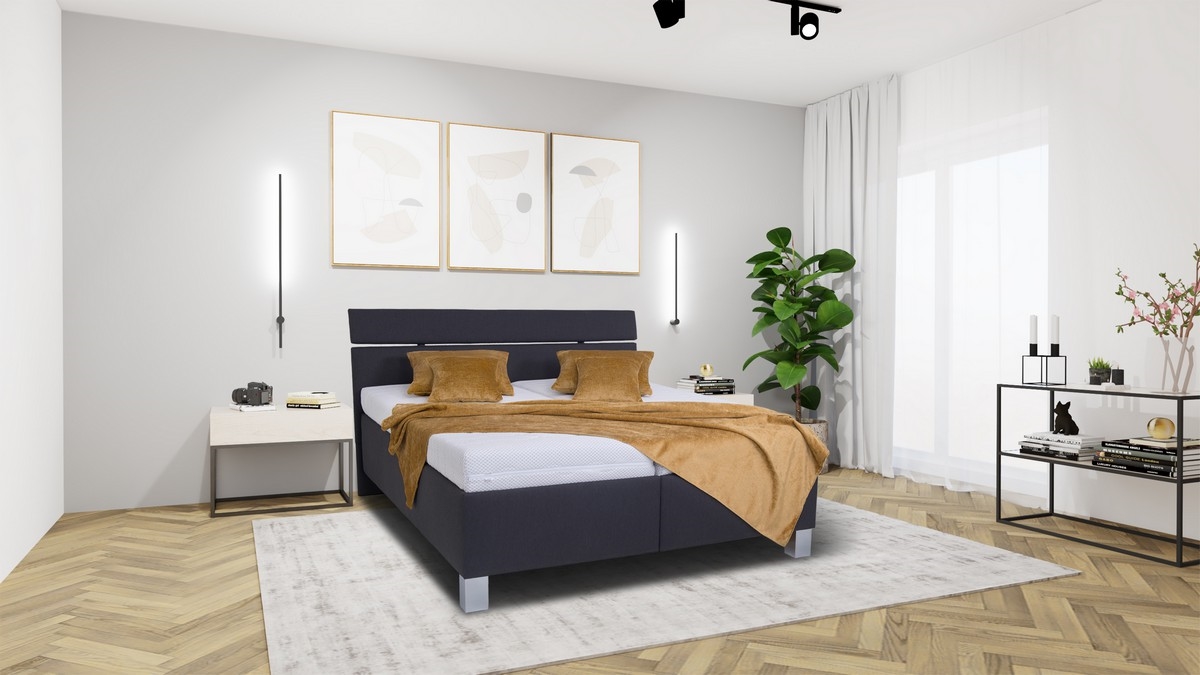 • Тапицирано двойно легло с отделно положени матраци, предлагащо максимален комфорт и практични функции за перфектна почивка.