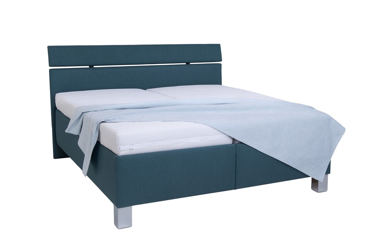 • Тапицирано двуспално легло с отделни, незакрепени матраци предлага максимален комфорт и практични функции за перфектна почивка.