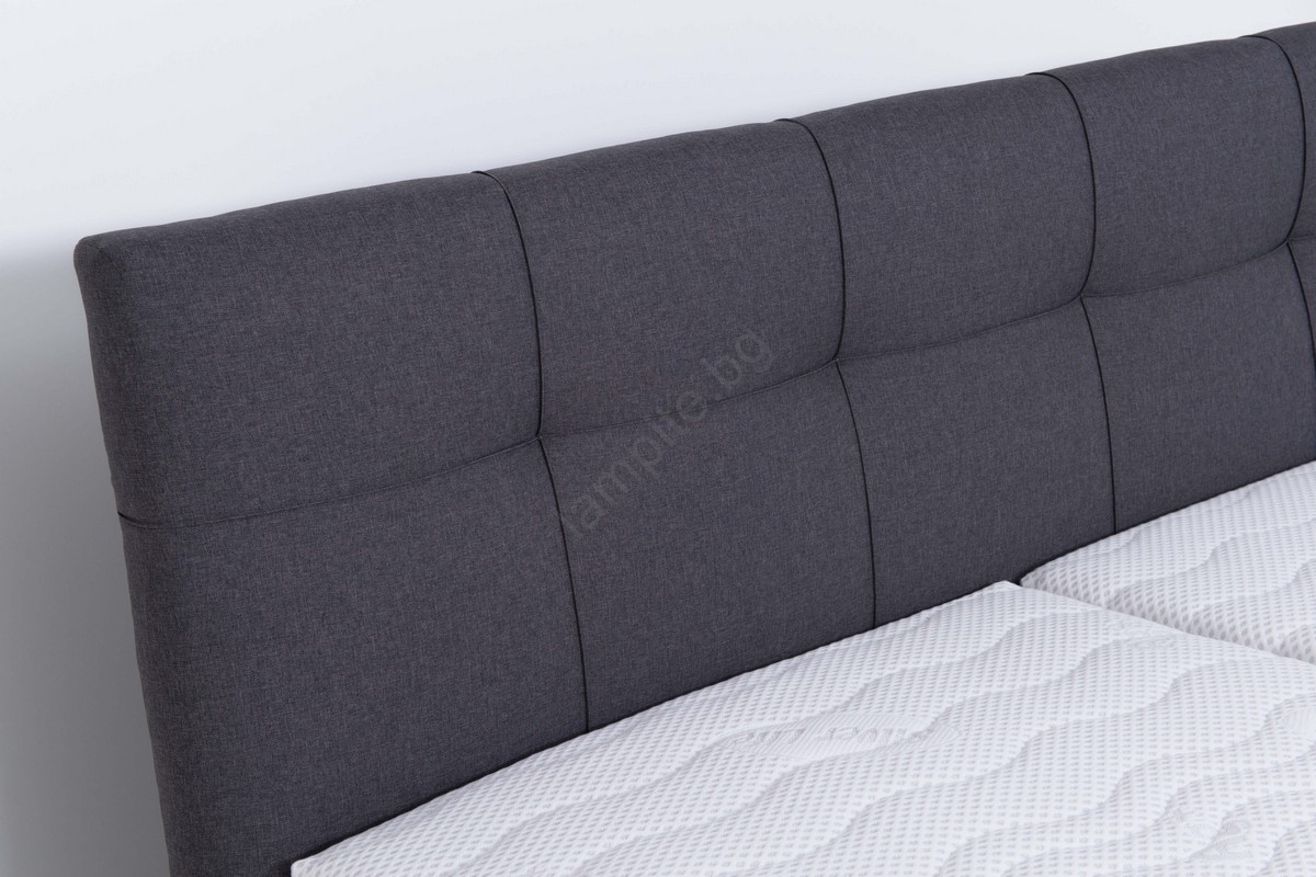 • Тапицирано двойно легло с отделно поставени матраци се отличава с детайлно обработено, елегантно прошито табло.