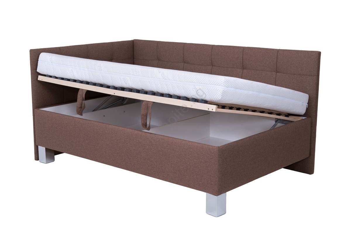 • Тапицирано легло MARIA PETITE 120x200 см с матрак и вместително място за съхранение, кафяво