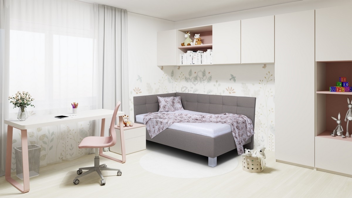 • Тапицирано легло с матрак и място за съхранение MARIA PETITE 120x200 см сиво