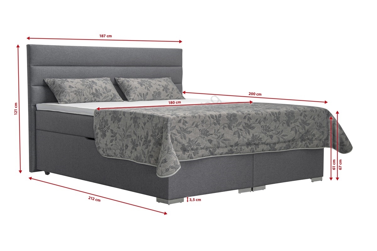 Тапицирано легло NEW BOLERO 180x200 см с място за съхранение и матраци с топ матрак, сиво