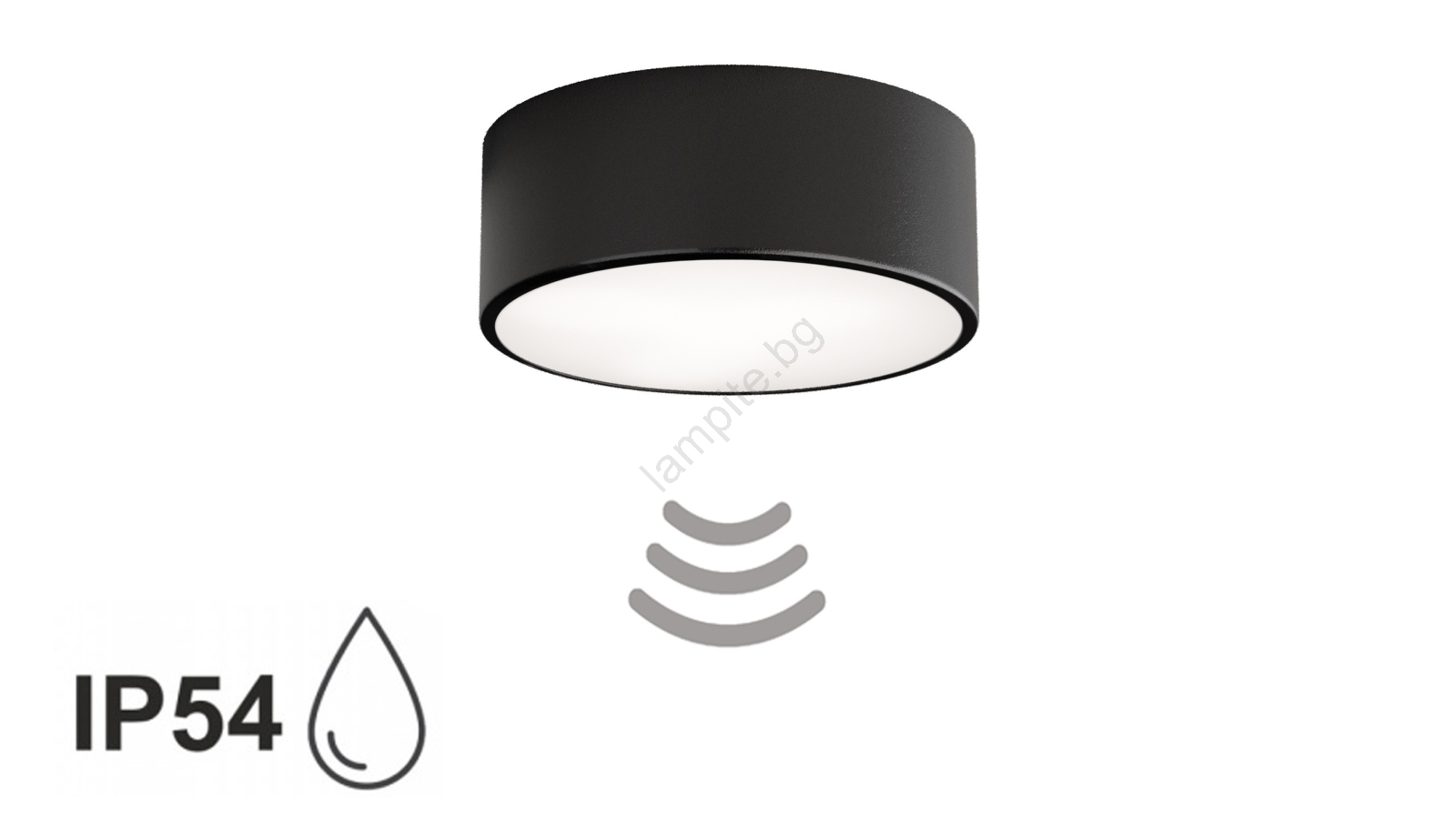 Таванен осветител за баня със сензор CLEO — 1xE27/24W/230V, Ø20 см, IP54, черен