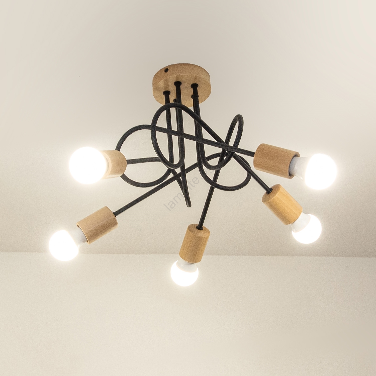 Таванен полилей OXFORD 5xE27/15W/230V бор/черен