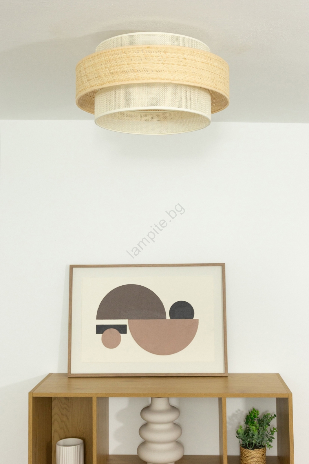 • Таванно осветително тяло BOHO 1xE27/60W/230V, Ø 40 см, джут/крем