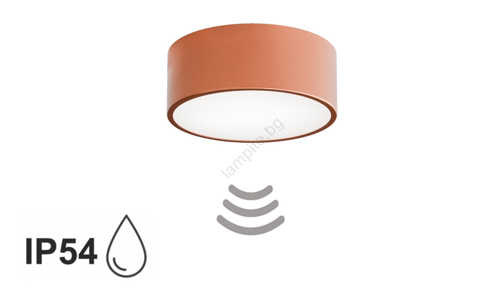 Таванно осветително тяло за баня със сензор CLEO 1xE27/24W/230V Ø20 см IP54 медно