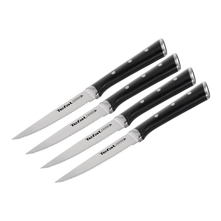 Tefal - Комплект от 4 бр. ножове за стек ICE FORCE, 11 см, от неръждаема стомана, блестящ хром/черен